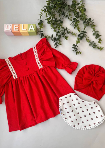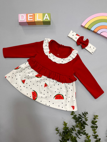 پیراهن استین دار نخ پنبه یلدایی همراه با تل دخترونه
