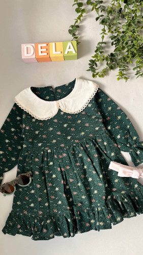 پیرهن سبز گلدار یقه ببه